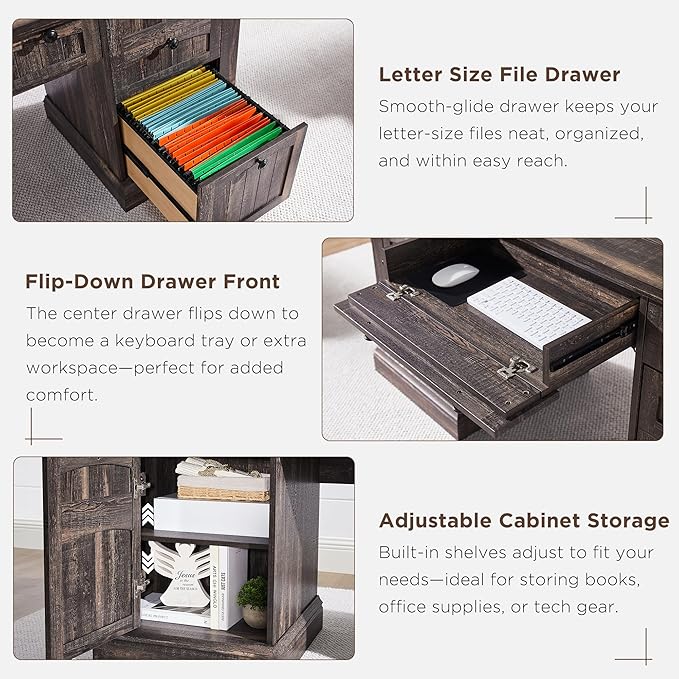 - Durable & Reliable Construction: Crafted from premium engineered wood, this farmhouse desk set is built to handle daily use with long-lasting strength and stability. It ships in two separate boxes that may arrive on different days. Need help? Our customer support team is just a message away!