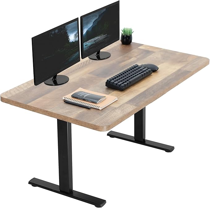 VIVO Electric 43 x 24 in Standing Desk, Memory Height Adjustment, 1B Series, One-Piece Reclaimed Wood Top, Black Frame, DESK-KIT-1B4P