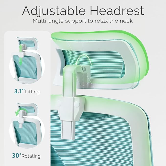 SEATZONE Ergonomic Office Chair,High Back Mesh Office Chair with Adjustable Headrest and Lumbar Support,Swivel Rolling Computer Chair Cute Desk Chair with Wheels,Blue
