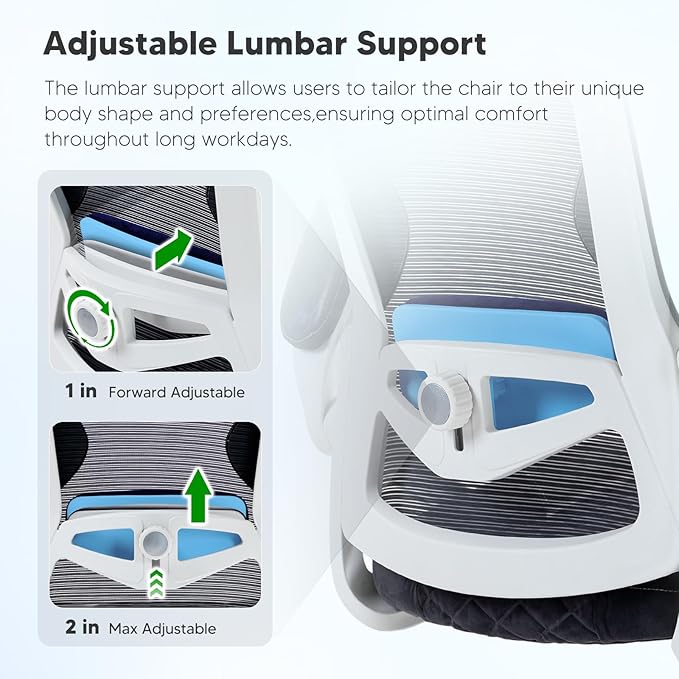 - Adjustable Ergonomic Chair: Our office chair features with adjustable 2D headrest and flip up armrest,backrest with 105°to 120°recline,customized for your multiple work postures while relieving the back pain after long hours of sitting.