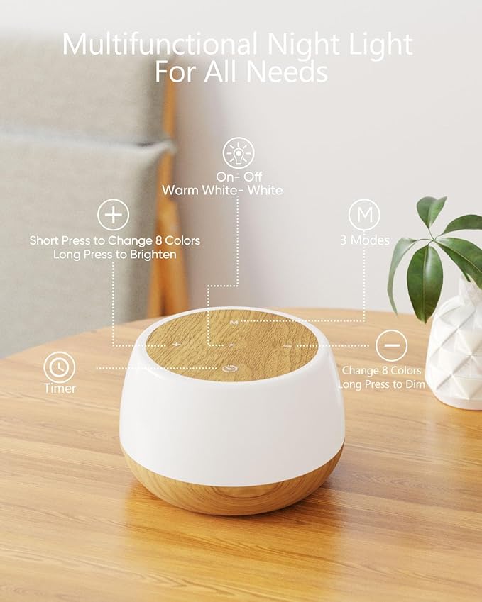 - 【Stepless Dimming】Long press the "+/-" button to adjust the brightness of the baby night light as you like. This touch night light won't sear your eyeballs during the black night, which make it perfect to newborn, baby, kids, children, teenagers. The memory function of the small table lamp dimmable can remember your favorite color, brightness and mode.