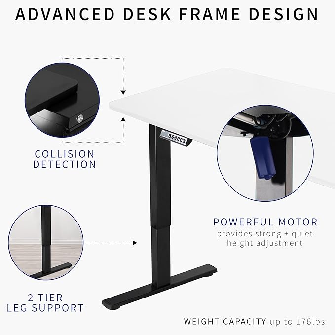 - Powerful Electric Motor: Enjoy a height range of 29.2” to 48.4” with this frame’s powerful motor and strong legs using precise telescopic height adjustment