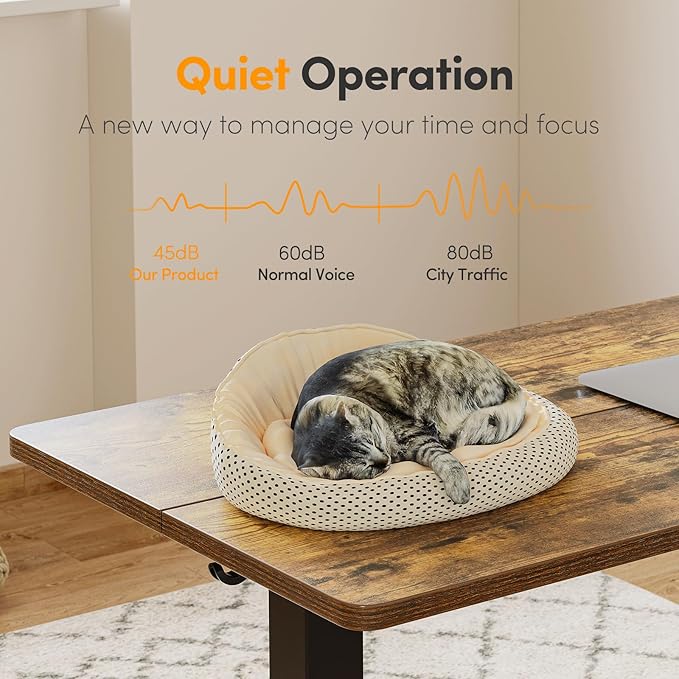 - Strong Frame: The rising desk frame is made of industrial-grade steel frame. Desktop lifting speed: 20mm/s, no-load noise ≤ 55db.