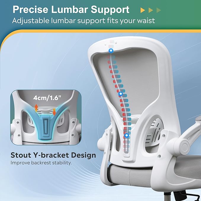 DEVAISE Office Chair Ergonomic Computer Desk Chair with Flip-up Armrests, Comfy Mesh with Adjustable Lumbar Support, White