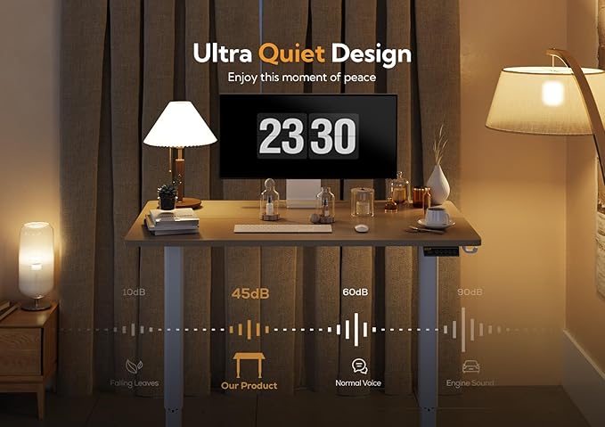 - Quiet & Smooth Height Adjustment: Engineered to accommodate a wide range of users, This electric sit stand up desk allows you to easily transition desk height between 28.3 ” and 46.5 ” tall for sitting or standing positions with no-load noise ≤ 45 dB.