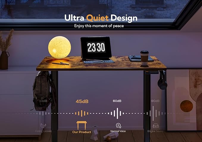 - Quiet & Smooth Height Adjustment: Engineered to accommodate a wide range of users, This electric sit stand up desk allows you to easily transition desk height between 28.3 ” and 46.5 ” tall for sitting or standing positions with no-load noise ≤ 45 dB.