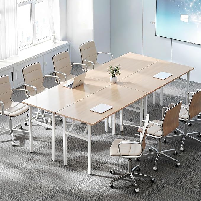 - The collapsible desk no assemble needed, can be opened and folded in a few seconds; legs can adjust 1/2"-1" lengths, made the folding office table keep stable even on uneven floor; it folds up quickly and can be stored easily without taking up too much space.