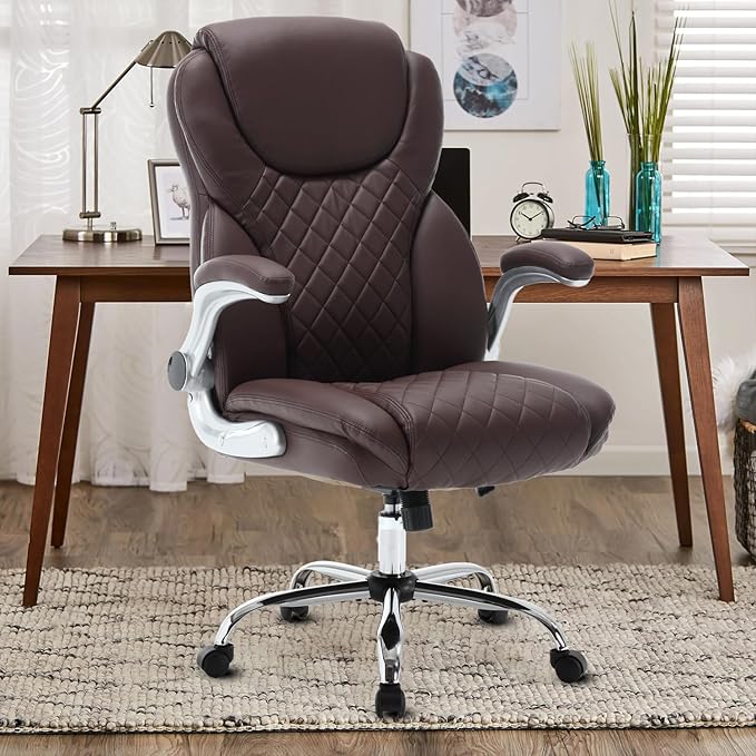 - 【Stability and Comfort】 Rest assured on our brown leather office chair is sturdy engineered wood seat base that ensures stability. The gas lift cylinder of the comfy office chair is SGS certified for adjustable height and BIFMA certified for safety and durability. The Double padded cushion with built-in liner springs for enhanced comfort during long hours of sitting. This ergonomic executive office desk chair guarantees stability, allowing you to focus on your tasks in a relaxed manner.