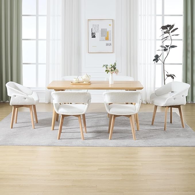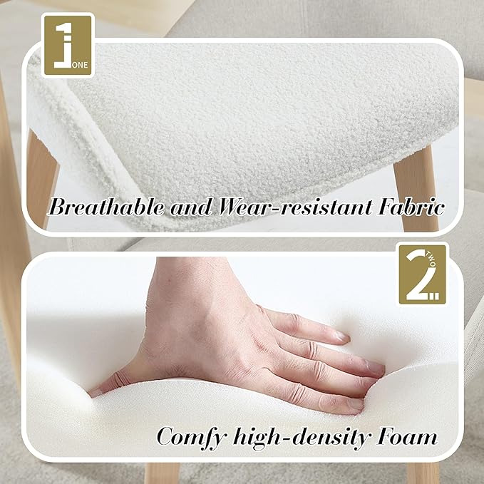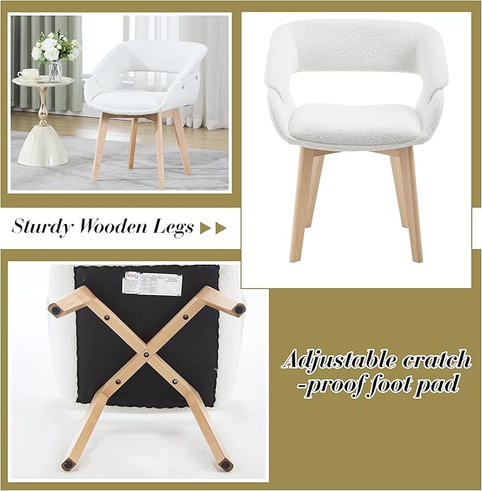 Home Office Desk Chair No Wheels Set of 6, Upholstered Boucle Modern Accent Side Armchair with Wood Legs Hollow-Out Back, for Vanity Living Dining Room Bedroom, Beige