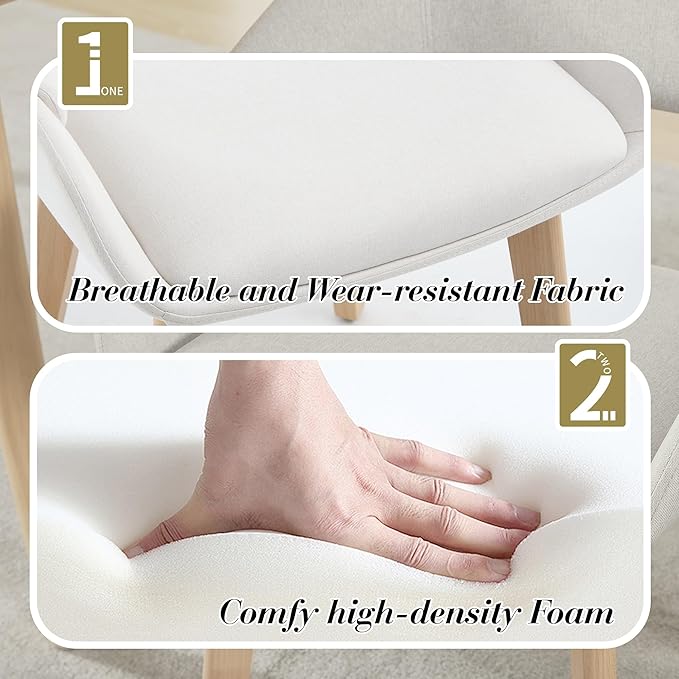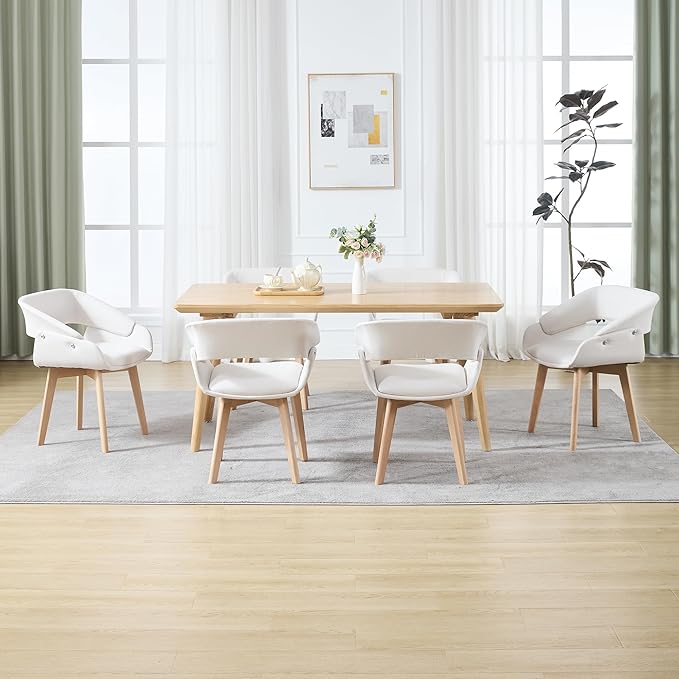 Home Office Desk Chair No Wheels Set of 6, Upholstered Linen Fabric Modern Accent Side Armchair with Wood Legs Hollow-Out Back, for Vanity Living Dining Room Bedroom, Beige
