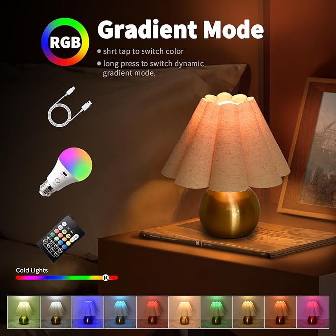 - 【Product Specification】 Versatile with a standard E26 base (bulb included), you have the flexibility to choose between warm, cool, or other types of bulbs based by remote control.This table lamp can be dimmable, adding to its versatility. It is perfect for bedrooms, living rooms, baby rooms, offices, and college dorms.