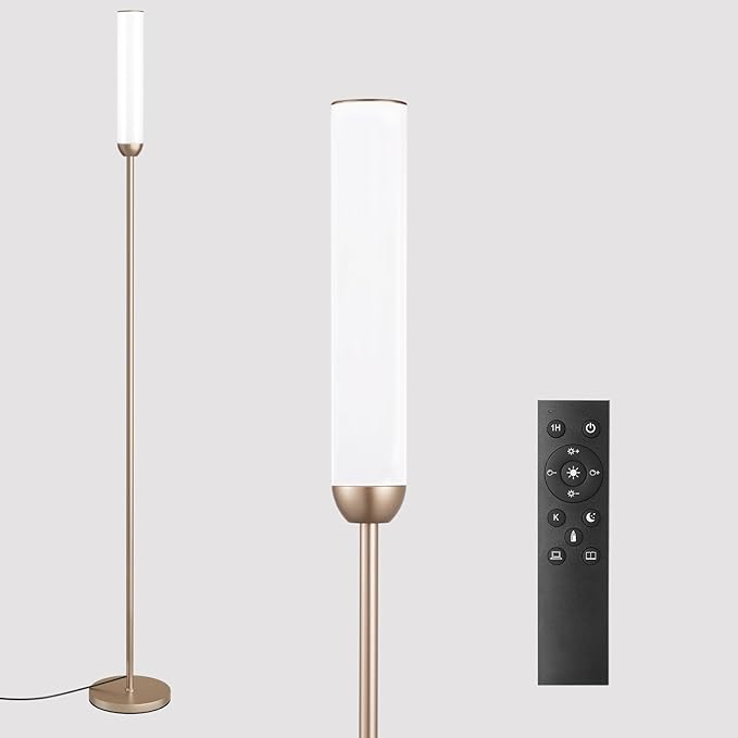 LED Floor Lamp with Remote Control, 65" Standing lamp with Stepless Adjustable 3000K-6500K Colors & 5%-100% Brightness, Foot Switch(Champagne Gold)