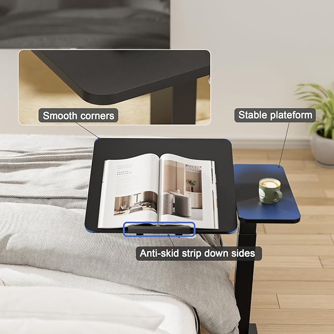 - SAVE SPACE: Bed Table equipped with four hidden, 360° wheels, enabling silent movement and easy storage under furniture. The Hospital Table Over Bed can be moved closer to you while still leaving ample legroom. Couch Desk is a portable workstation designed to make better use of space, for use in home, offices, hospitals, work, study