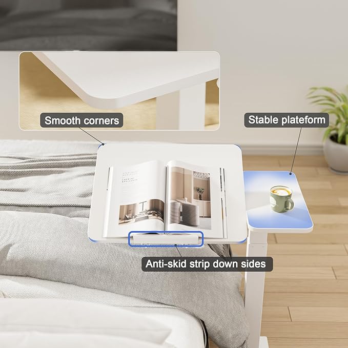 - SAVE SPACE: Bed Table equipped with four hidden, 360° wheels, enabling silent movement and easy storage under furniture. The Hospital Table Over Bed can be moved closer to you while still leaving ample legroom. Couch Desk is a portable workstation designed to make better use of space, for use in home, offices, hospitals, work, study