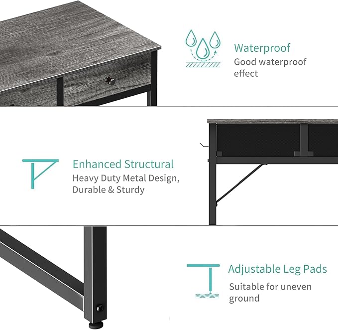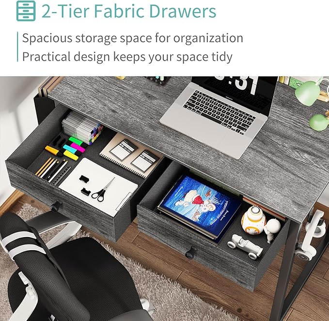 - Modern Simple Style Design: Computer desk with 2-tier fabric open drawers with wooden front for storage, providing plenty of room for under-desk storage and organization. This splice board desk is made of thick P2 particle wood board with scratch-resistant, anti-collision and waterproof, protect home office desk surface from daily wear and tear