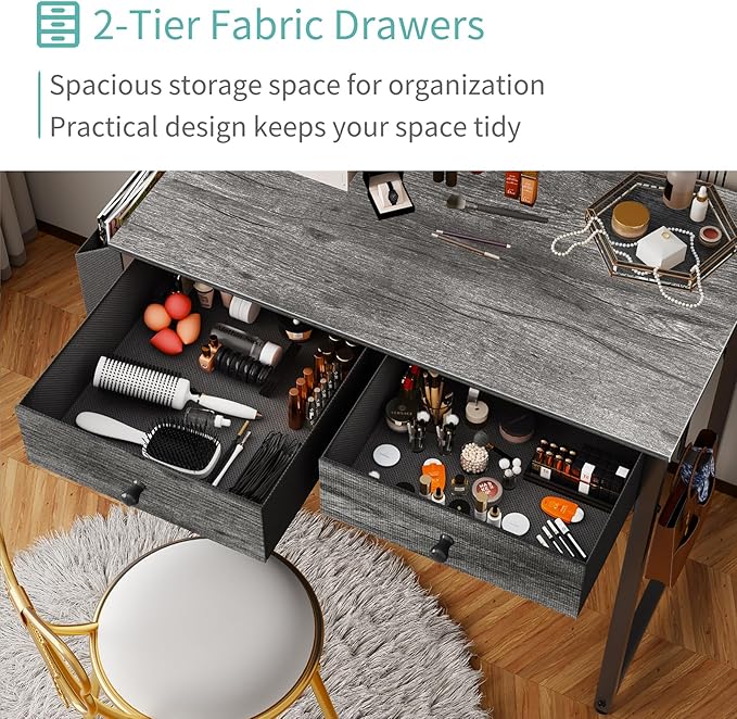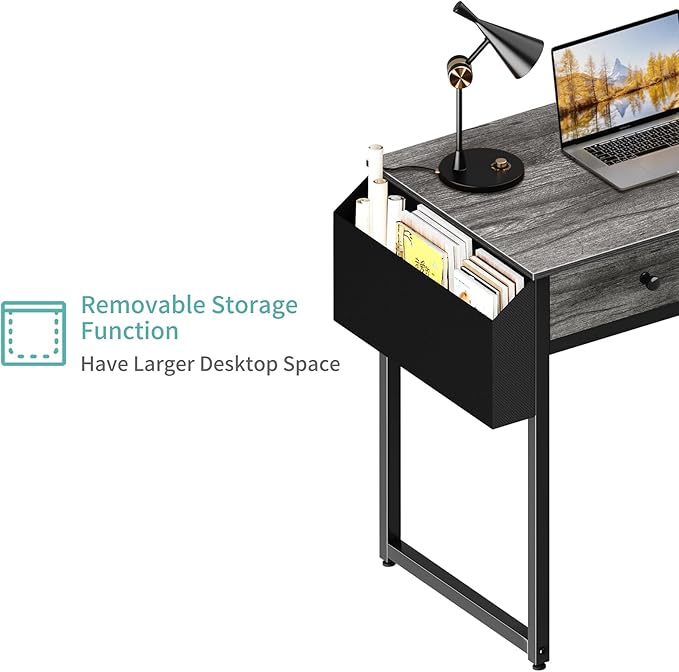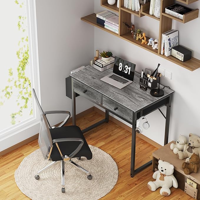 Lufeiya Small Desk with Drawers - for Bedroom, 32 Inch Home Office Computer Desk with Fabric Storage Drawer and Bag, Study Writing Table for Small Spaces, Gray