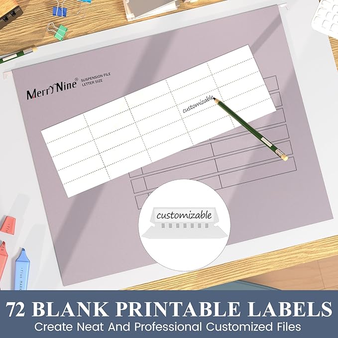 Merrynine 72pcs Hanging File Folders Letter Size, Paper Filing Cabinet Folders Organizer with 1/5-Cut Tabs and Inserts, Suspension File Organizers for Office School Home Hospital, Assorted Colors