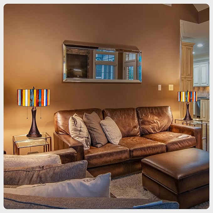 - 【Definitely Eye-Catching Antique Living Room Lamp】 Vintage style tiffany lamp shade shines the light through the glass and creates beautiful patterns. All of the colors are vibrant and evenly toned when light on, it gives off a muted and relax light. Absolutely will look stunning in your room and be the focal point of adding a touch of elegance for home and office.