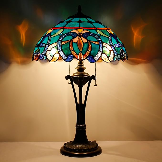 Tiffany Table Lamp Blue Green Stained Glass Desk Lamp 16X16X24 Inches Jewelry Baroque Style Reading Light