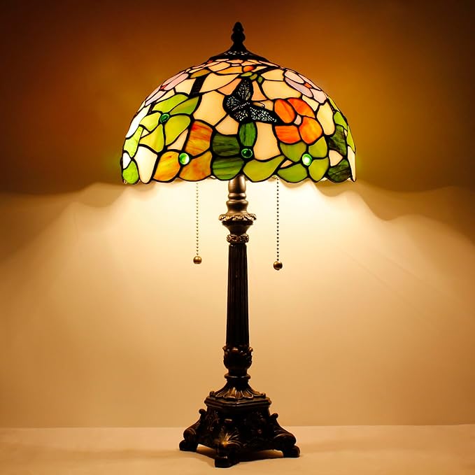 Tiffany Table Lamp Butterfly Flower Style Stained Glass Desk Lamp 12X12X21 Inches Reading Light