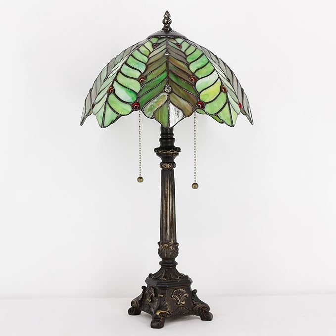 Tiffany Table Lamp Brown Green Leaf Style Stained Glass Desk Lamp 12X12X21 Inches Reading Light