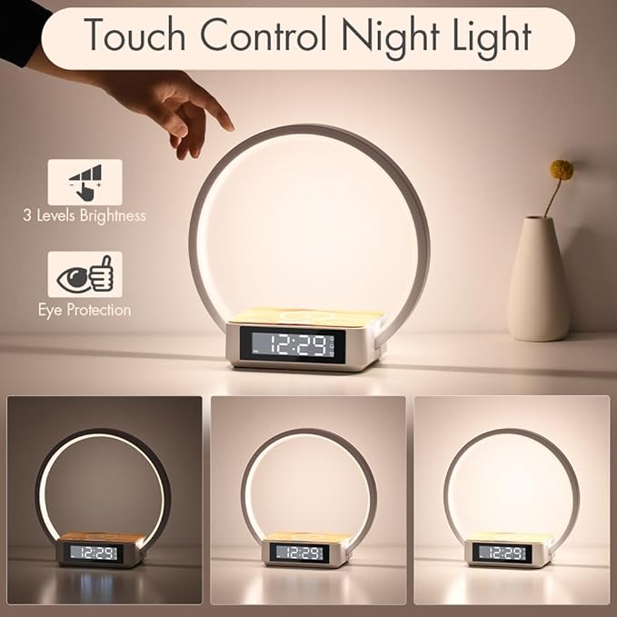 Wireless Charging Station with Alarm Clock,Bedside Lamp with Sunrise Wake-Up Light,Wireless Phone Charger,Touch Table Lamp with 3 Brightness Levels,Idea Gifts for Women,Men,Teens,Adults