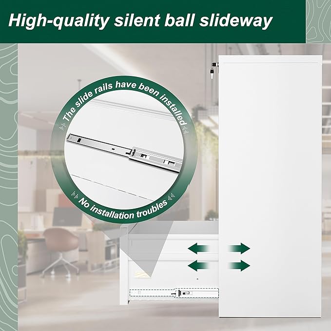 - ✔Heavy Duty File Cabinets -- White file cabinet is made of thick high-strength cold-rolled solid all steel material. Rugged and not easily deformed; Max load capacity up to 330 lbs. Coated with powder-coated construction makes white filing cabinet looks modern and stylish, can match your other office furniture perfectly while immune to corrosion, rust, waterproof and easy to clean.Ideal for long-term use!