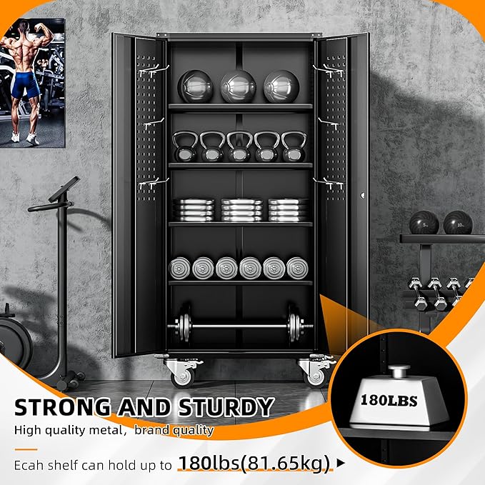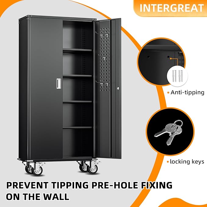 INTERGREAT Metal Storage Cabinet with Wheels, 72" Lockable Mobile Cabinets with Adjustable Shelves, Large Capacity Rolling Tall Cabinet with Casters for Home Office, Kitchen, Garage, School(Black)