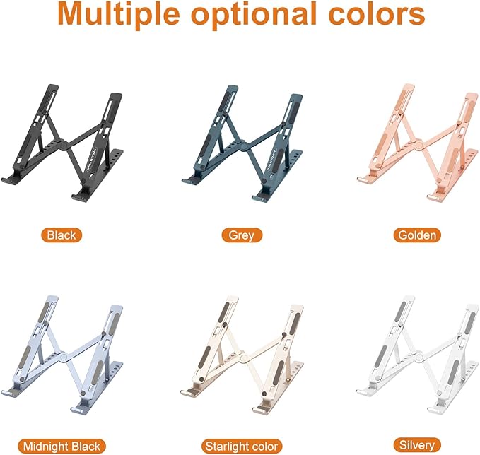 Ergonomic and Foldable Laptop Stand for Desk, Adjustable Riser, Fits All Laptops and Notebooks up to 17,Ultra-Thin,Ventilated Cooling,ABS+Silicone,Silver.