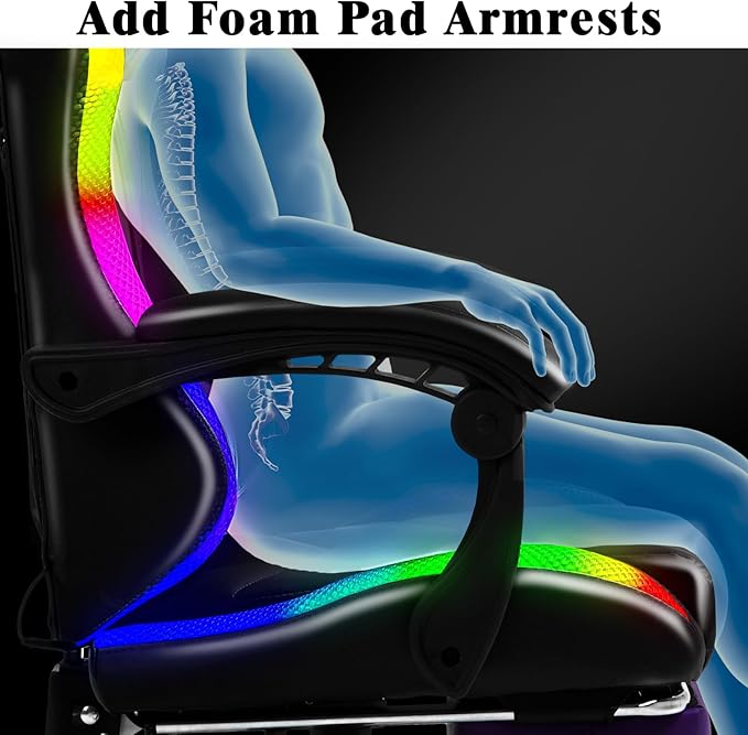 - More Dynamic LED Gaming Chair: Compared with other traditional gaming chairs, it has multiple pure color lights and RGB light effects, making it more interesting and adding gaming pleasure and excitement to your daily entertainment. Certified: Gaming chair's seat plate is made of FSC-Certified wood.