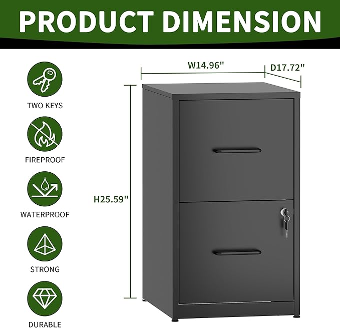 - 【Spacious Storage & Organizaton】The 2 drawer file cabinet with larger and deeper drawers, and provides ample storage space for letters size file, paper, notebook, archive box, folders and your personal belongings. Guaranteed to keep your files organized.