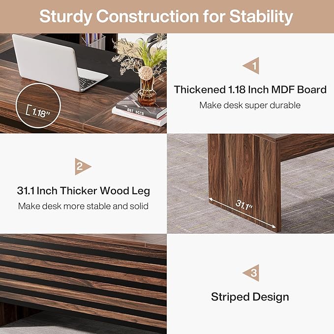 - 【Spacious Executive Desk】: The desk works great as a piece of business furniture or a home office workstation. With a 62.2" W x 31.1" D super large desktop, it provides ample space for your computer, monitor, printer, as well as for writing, study, and other home office activities. This executive desk is a great option for dual monitors.