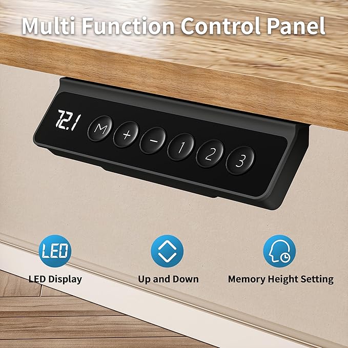 - Ergonomic Design for All-Day Comfort: The adjustable desk features a one-touch height adjustment and an LED display for clear visibility of height settings, allowing you to easily adjust the stand up desk height according to your work requirements.Effortlessly transition between sitting and standing,The standing desk can reducing the risk of back/neck pain and keep healthy .Accessories, Our office desk included headphone hook and cable management solutions help keep your workspace neat and tidy