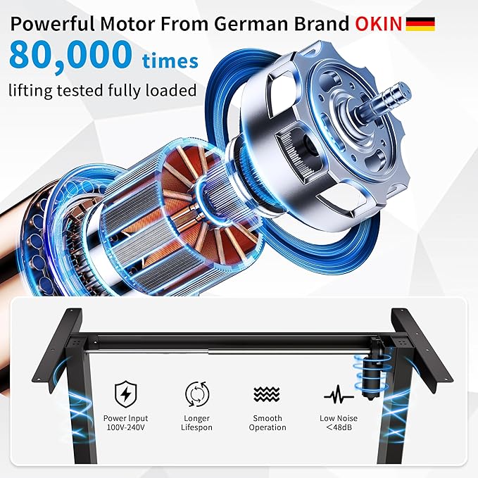 - Ultra Quiet Motor-Smooth Adjustability:The built-in motor of the home office desk is designed for durability and silent operation. Its powerful lifting capability ensures smooth and swift height adjustments. Operating with minimal noise, The desk maintains a quiet work environment. lifting up 27.5"-45.7" at a speed of 0.8 inch/s for seamless transitions between sitting and standing
