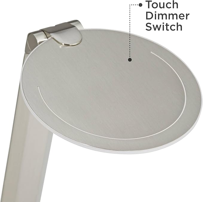 - 9 watt built-in LED array. 3000K color temperature. 80 CRI. Touch dimmer switch with on-off function. Discrete dimmer control located underneath the lamp head with blue indicator light when off.