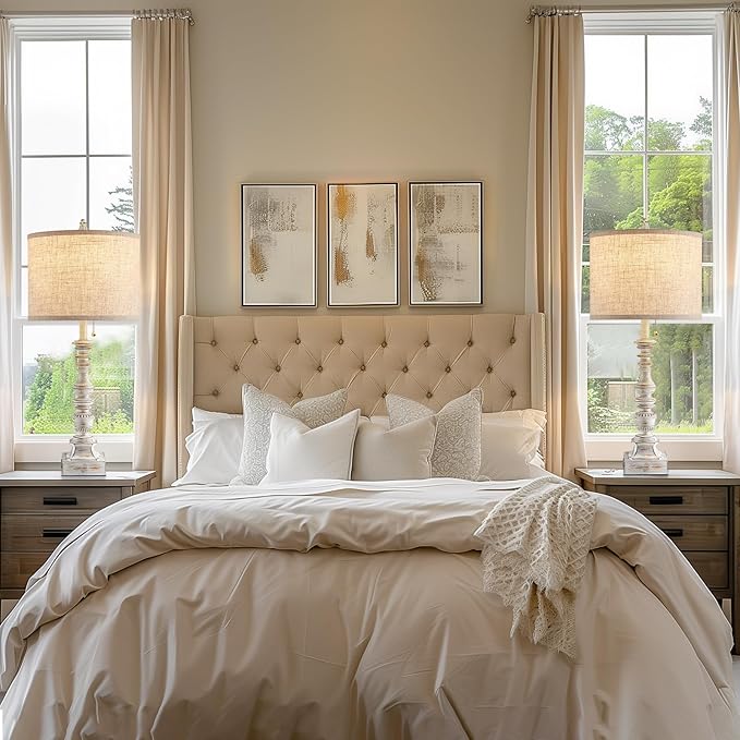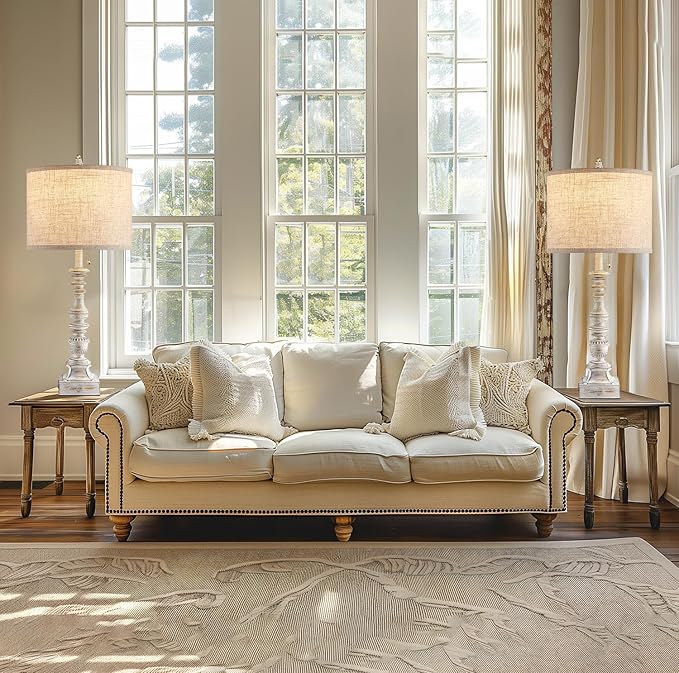 - Elegant Appearance: These farmhouse lamps set of 2 feature a sturdy resin base with a distressed finish that captures the essence of farmhouse charm. The linen fabric shades add a touch of natural elegance, making these lamps a perfect fit for various decor styles. Whether you're looking to brighten up your living room, add a cozy touch to your bedroom, or create a warm ambiance in your office, this versatile farmhouse table lamps set of 2 are the perfect choice.