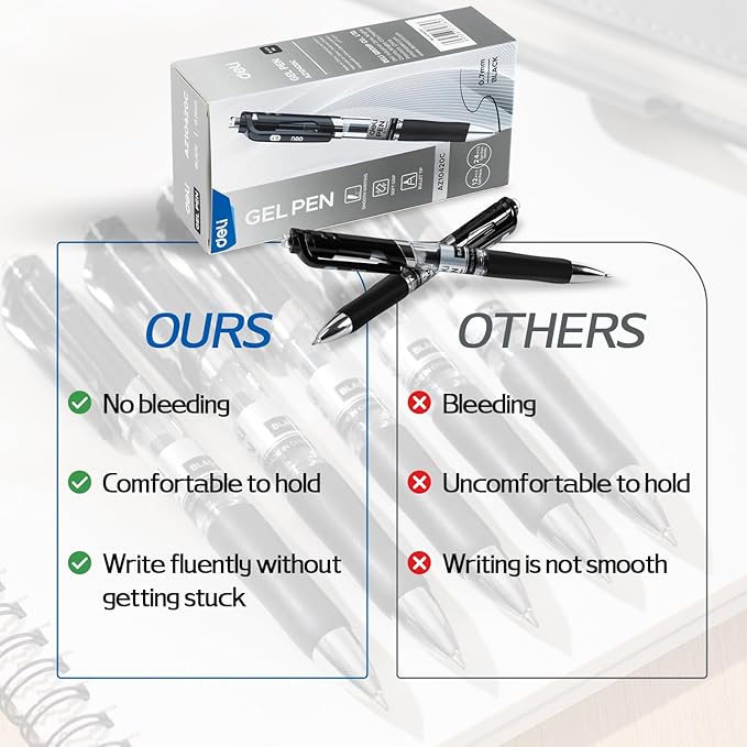 deli Gel Pens, 36 Pcs Retractable Black Ink, 12 Pens with 24 Refills,Medium Point Pen 0.7mm, Smooth Writing, Fast Dry, No Bleed for Journaling Note Taking, Home School Office Supplies