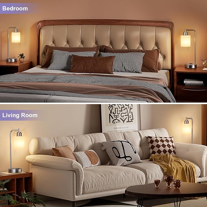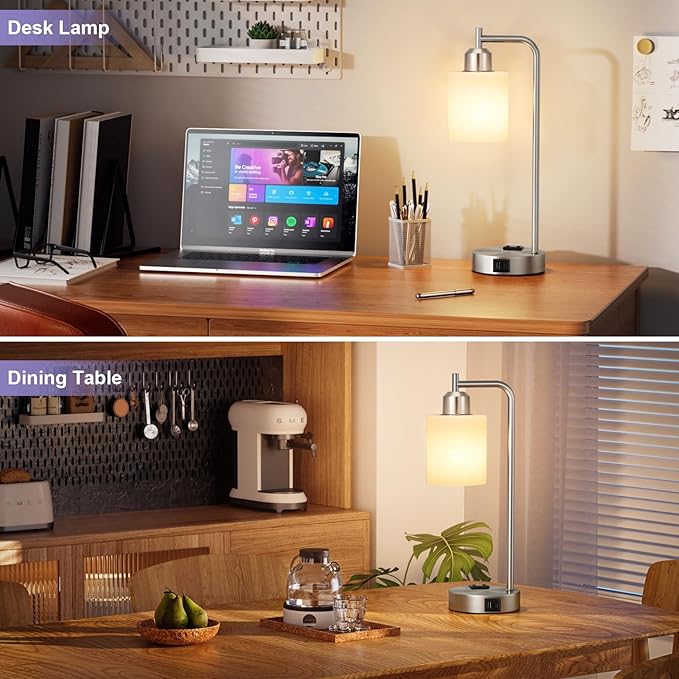 - MINIMALIST AND INDUSTRIAL STYLE LAMPS - This vintage desk lamp is designed with thick cylinder glass shade and a rust-proof matt black metal body,perfectly combining classic and rustic styles!This modern lamp adds style to your place even in the light off. Suitable for all kinds of places such as bedrooms, living rooms, guest rooms,dorms,kitchens, offices, cafes, etc.Also perfect gift choice for festivals, birthday and housewarming~
