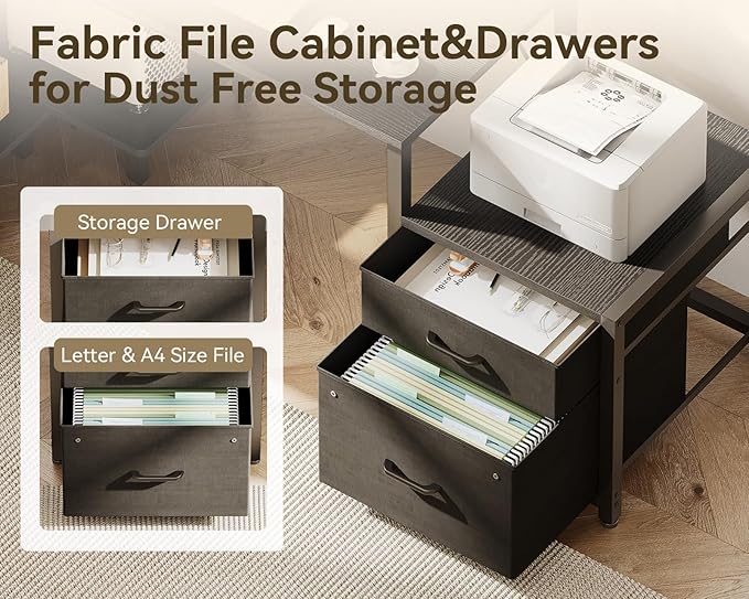 - 【Spacious & Dust-Free Storage】This L-shaped office desk features a spacious fabric drawer for daily essentials and a sturdy file cabinet for document organization. The breathable fabric prevents dust accumulation while the smooth-gliding drawer ensures quiet operation. Perfect for teachers, students, or home office workers who need a clutter-free office desk or study space.