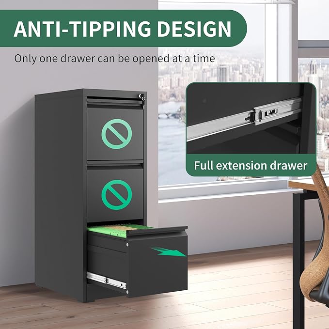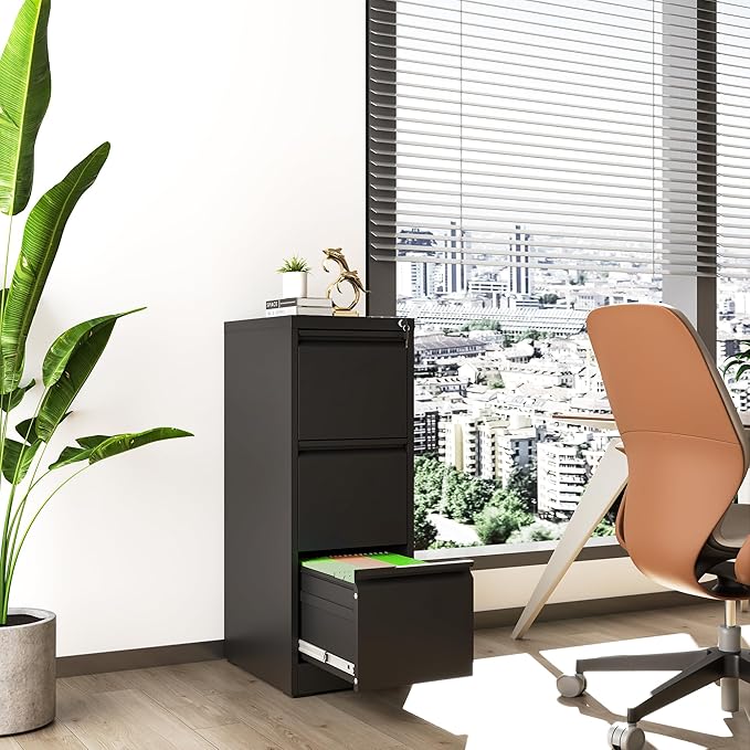 - 【Large capacity】This 3 drawer black file cabinet offers spacious storage with larger and deeper drawers for letters size folders, drawer with lock is equipped with adjustable hanging rails, allowing you to customize the organization of your files
