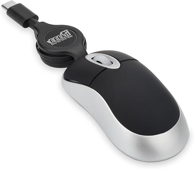 EEEKit Mini Wired USB C Mouse, 3-Button Retractable Corded Mouse Optical Computer Mice for Laptop PC MacBook iPad Smartphones, Black