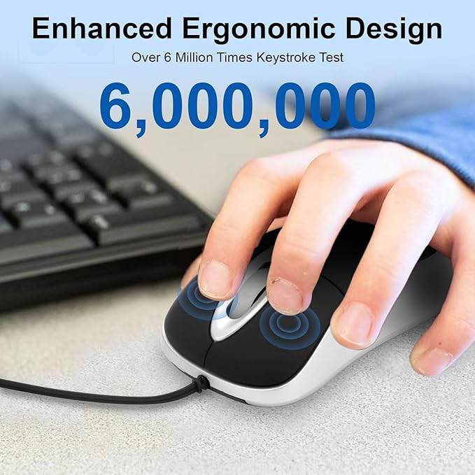 - Accurate Click: With 1600 DPI high-resolution sensitivity, you'll get precise cursor control, scrolling pages becomes effortless with this wired optical mouse