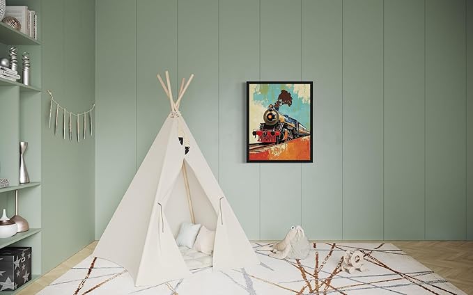 Train Pop Art Poster Print, Vintage Retro Wall Art Decor Paintings Classic Artwork for Bedroom Living Room Decorations. 43 (Train, 16 x 20 inches, Black Frame)