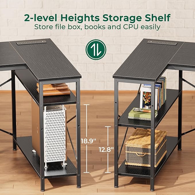 - 【Reversible Workspace】The L-shaped design of this corner computer desk is perfect for optimizing your workspace. With reversible shelves that can be installed on either side, you can install the writing desk to fit your unique setup, whether you’re working solo or collaborating with a partner