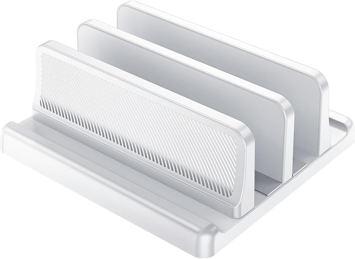 - Multi-Device Support:Crafted from high-quality ABS plastic, this stand is compatible with a wide range of laptops, Support for for All MacBook/Surface/Samsung/HP/Dell/Chrome Book.In addition to holding your laptop, the stand features additional slots to hold tablets, phones, or other accessories. This multi-device support helps keep your workspace organized and clutter-free.