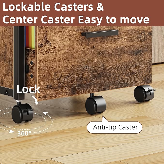- 【Flexible Rolling File Cabinet】Equipped with 5 wheels. 4X 360° locking wheels allows you to easily move the cabinet anywhere. 1 center wheel ensures stability while pull the drawer