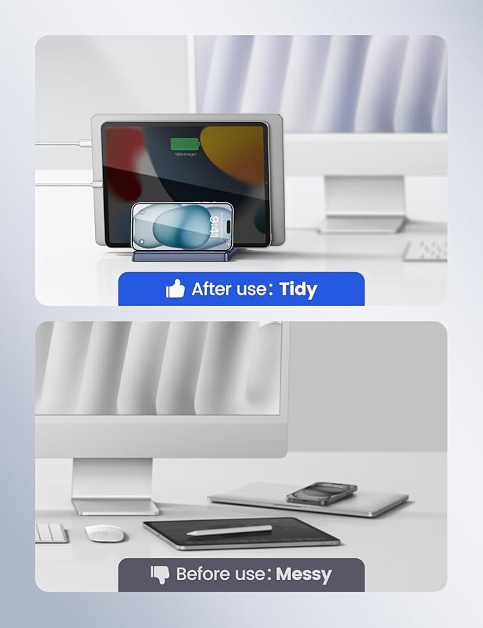 - Efficient Space Management:EAXBUX 4-in-1 Vertical Laptop Stand is a thoughtfully designed accessory that helps you maximize desk space while keeping your devices organized and easily accessible. The vertical design allows you to store your laptop upright, freeing up valuable desk space. This is particularly beneficial for users with limited workspace or those who prefer a minimalist desk setup.