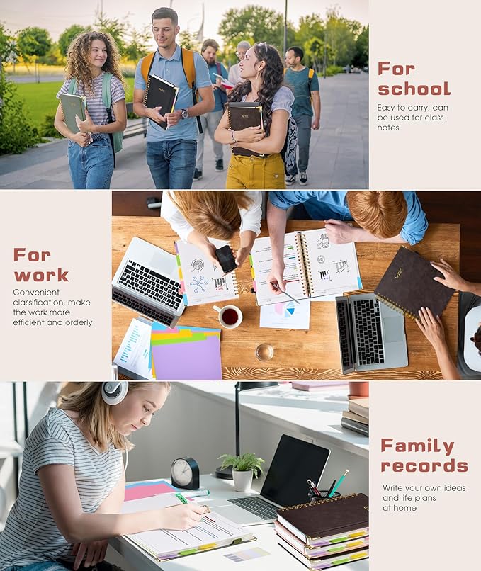 - 【Hardcover Notebooks for Work School】This spiral 5 subject notebooks is an excellent choice for students, professionals, or anyone who like to write things down and needs to keep them organized. A stylish look with gold color stamp font, binding brighten up your dreary desk, also a wonderful gift to work organization, back to school or family records.