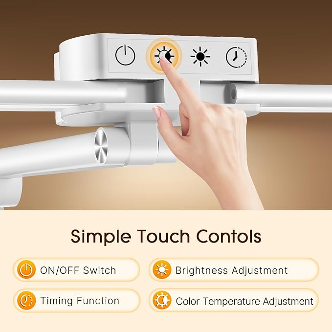 - Touch-free Gesture Sensor Switch & Touch Control - Crafted with a distinctive touch-free motion sensor switch, you can effortlessly turn the table lamp on/off by simply your hand without having to leave your seat. This desk lamp also features touch control to adjust the color temperature and brightness of the lighting, activate the timer function by a short press, automatically turning off after 45 minutes.