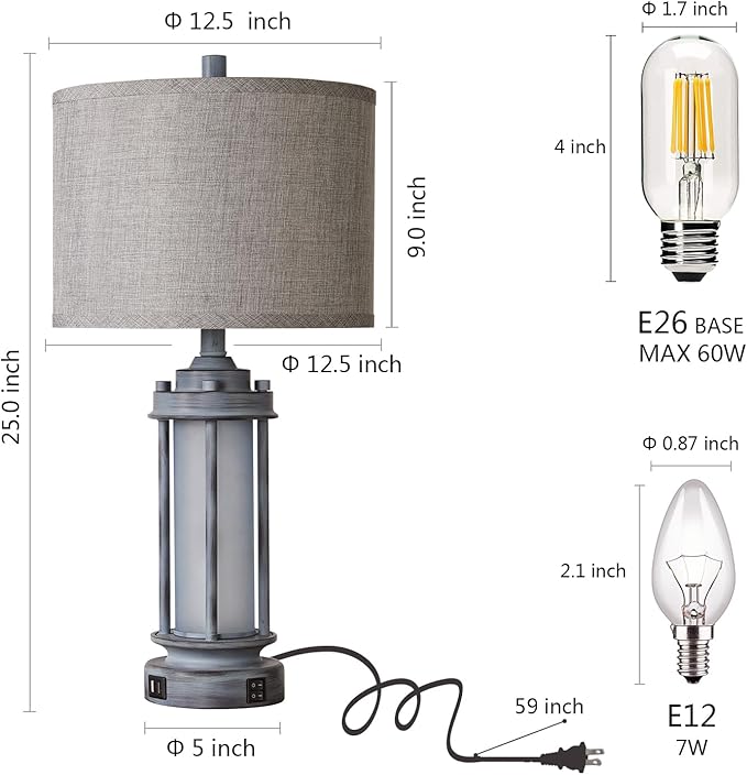 - Includes 2 LED Bulbs: The living room table lamp comes with 2 bulbs, including one E26 LED bulb and one E12 night bulb, no need to buy additional compatible bulbs, save time and worry! The bulbs are flicker-free and non-stinging, providing stable and soft daylight to take care of your eyes.